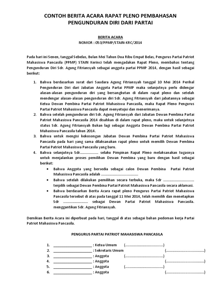 Contoh Berita Acara Pengunduran Diri Anggota Bpd Bagikan Contoh