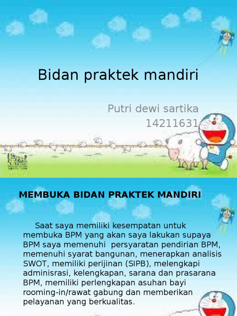 Vidio ini ak buat untuk teman-temn yg mau buka praktek bidan modal awalnya apa aja yg harus disiapkan. Bidan yang menjalankan praktek harus memiliki Surat Izin Praktek Bidan SIPB sehingga dapat menjalankan praktek pada saran kesehatan atau program. Namun pada kenyataannya BPM.